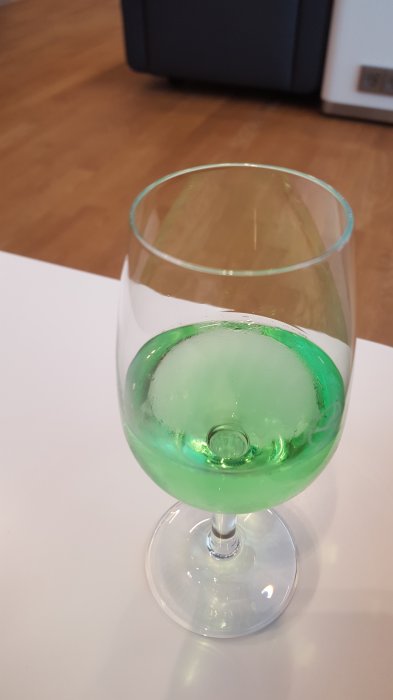 Lustig cider serveras i loungen, läskigt grön men helt okej i smaken.