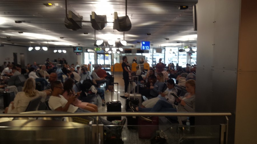 Nackdelen med loungens placering var att jag sedan behövde vandra tillbaka hela vägen till B-gaterna igen, dvs 6 trappor ner och sedan 6 trappor upp i andra änden då det är ständig kö till hissarna. Riktigt frustrerande logistik. Påminn mig om att inte byta på Frankfurt igen.
