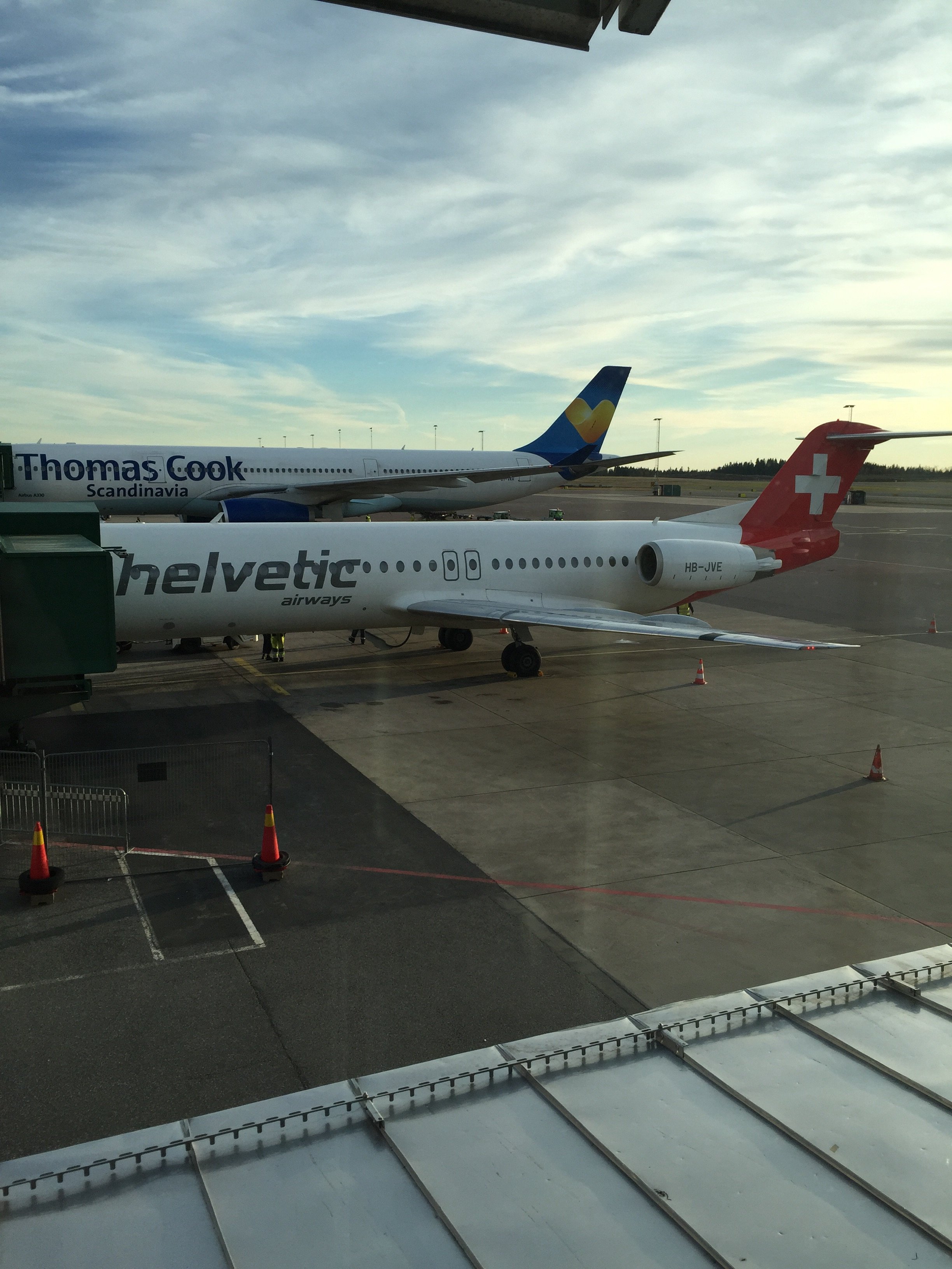 Söndag 19 April var det så dax, premiärflighten LX1227 var uppsatt för en fokker 100 opererad av Helvetic. Checkade in online via swiss egna app, bokningen gick ej få upp i SAS app. Kom till Lanvetter ungefär en timme förecavgång för lite lounge häng och eventuellt om det var något festligt med tanke på premiär. Efter ett glas bubbel i en ganska välbesatt SAS Landvetter lounge så gick jag ca en halvtimme innan avgång till gaten, här var det gott om folk men inte det minsta som vittnade om premiär?!.
