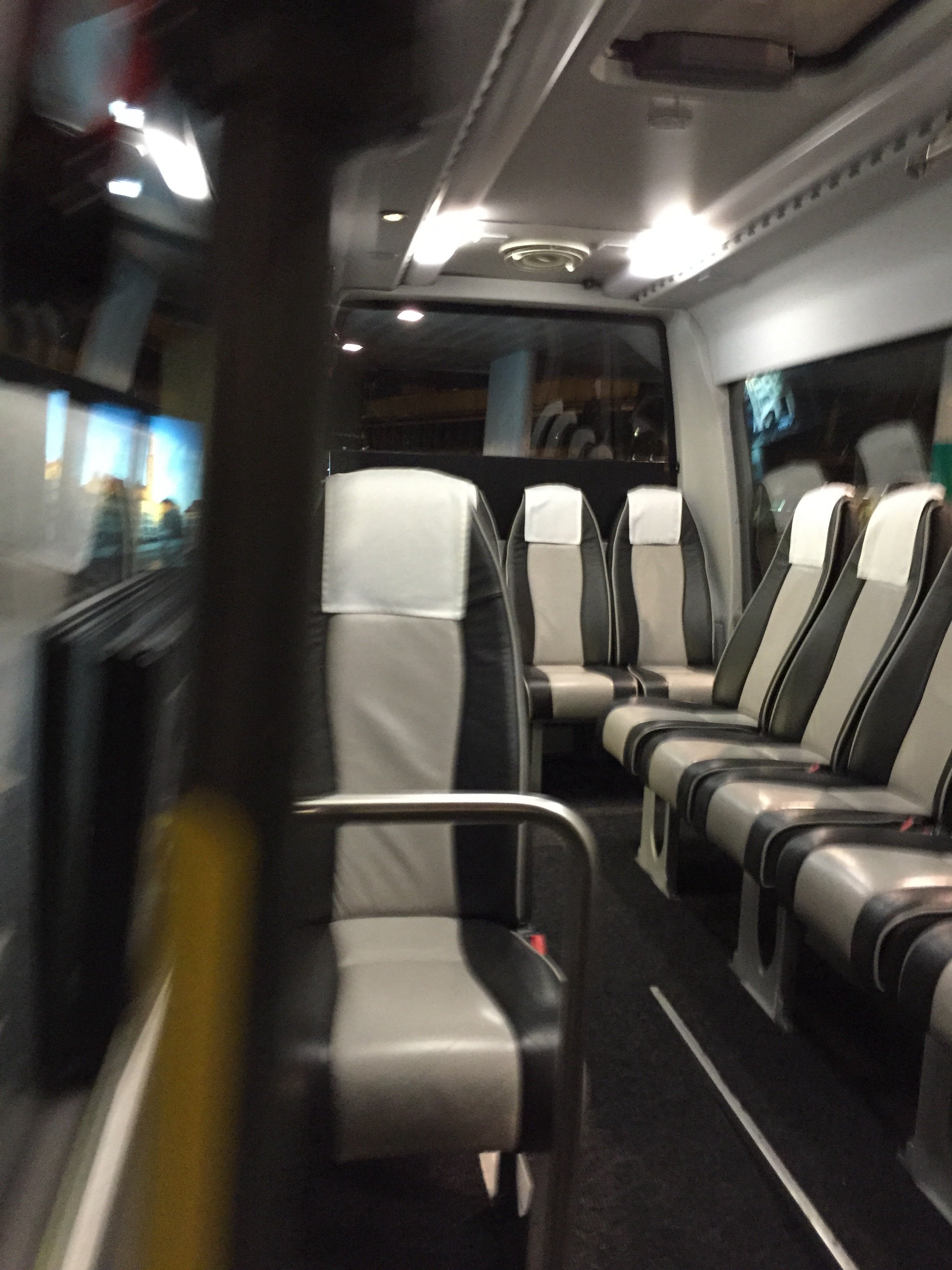 Boarding påbörjades relativt tidigt med möjlighet för Business, Och guldkort att boarda först. Har inte testat Helvetic fligter innan, prydligt flygplan men kabinen kändes gammal, dock sköna skinnstolar och bra utrymme. Swiss har ju även börjat med seat block på sina mindre plan vilket ger extra utrymme. Relativt snart efter start påbörjades serveringen. Vi var tre personer i business på tre rader. Två val av varm mat, helt klart bra för Europa och bra swiss standard. Ankomst var ca 25 min före tidtabell och med apron position. Här kom en oerhört positiv sak som business resenär, egen business buss. Effektivt och bekvämt