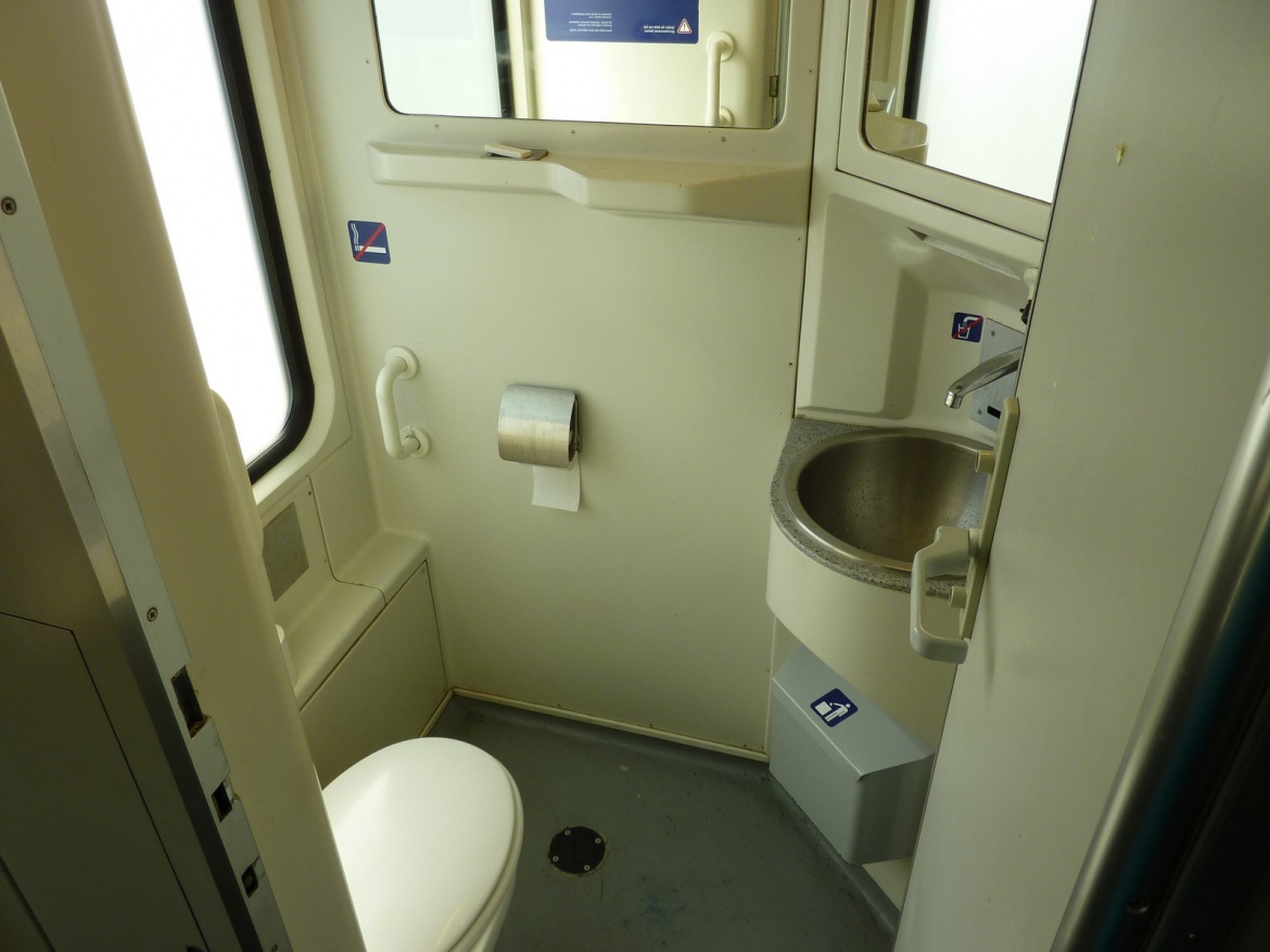 Ljus men inte fräsch toa. Ytan är aningen större än en vanlig flygplanstoa.