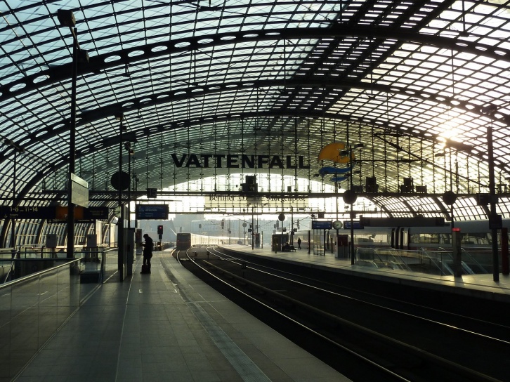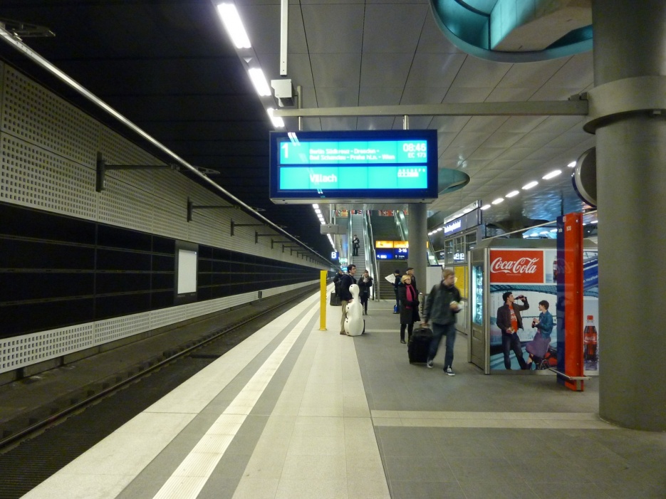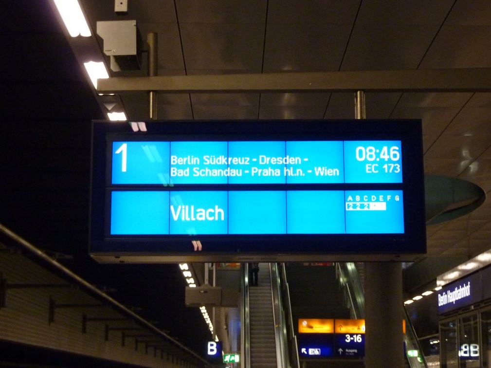 Tåget började rulla ut från Berlin Hauptbahnhof. Utrop var på tyska, tjeckiska och engelska.