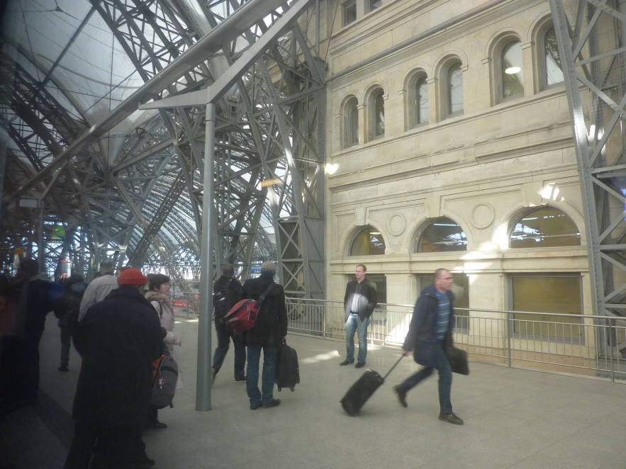 Dresden station. Många klev av tåget och det blev ganska tomt i vagnen.
