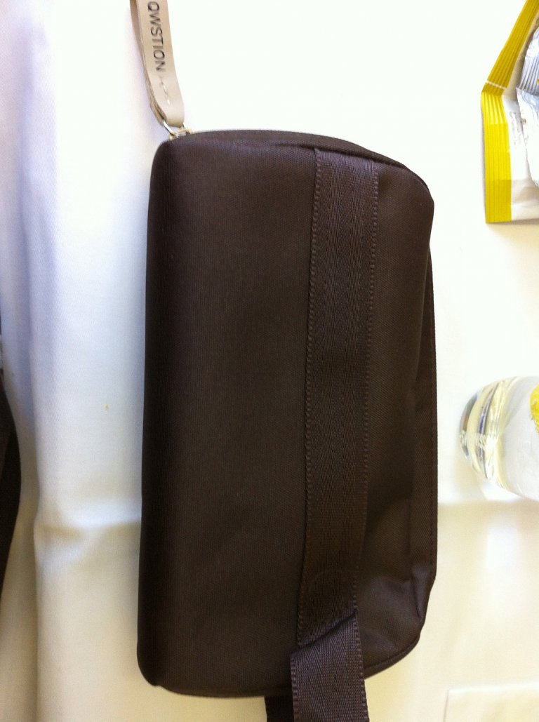 Menyn delades ut, som även innehåll små trevliga gastronomiska artiklar om Schweiz utöver själva maten som man hade att välja på. Det fanns ett intressant japanskt alternativ som jag bestämde mig för att prova. Det skulle visa sig vara ett bra val. Därefter var det dags att titta i den obligatoriska necessären. Den var en besvikelse och kändes som något man får när man tankar på Statoil. Där kanske man är bortskämd om man fått Emirates A380-version som är både snyggt designad och innehöll ett reseset av Bulgari-produkter bland annat.