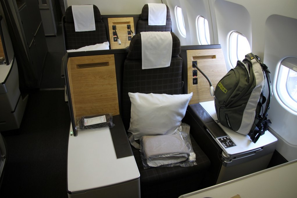 Väl på flygplatsen i Zurich besökte jag Senator Business Lounge D men vid lunchtid var det en usel idé, nästan smockfullt och en mer stressad än lugn upplevelse gjorde att jag flanerade bland butikerna en halvtimme istället innan det var dags för boarding på den A340 som skulle ta oss till Tokyo. 4A var mitt säte enligt rekommendationer från forumet. Ett bra val, men av det jag såg så borde 4d och 5d vara motsvarande bra val.