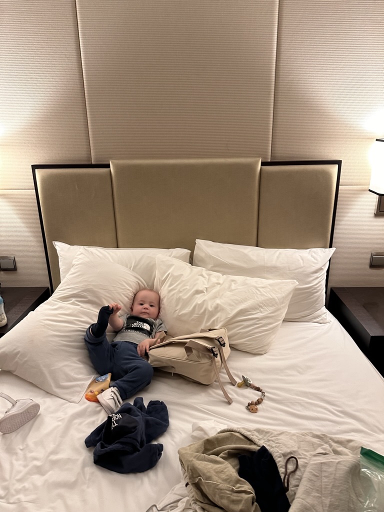 Tog oss över 1,5 timmar att ta oss från Gate i Terminal 1 till lounge 1903 (escape) i Terminal 2. Loungen var välbesökt och det fanns inga platser lediga, dock var det 2 olika sällskap som erbjöd sina platser till oss vilket gjorde att jag återigen blev imponerad över hur trevliga människor från Manchester är. Loungen var långt över förväntan med Champagne, engelskt frukost utbud och bra utsikt över plattan (förstår att du är där ofta @trekker ). Vi fick 15 minuter där och hann ge lillemqan lite äggröra innan det ropades ut att Singapore Airlines till Singapore hade påbörjat Boarding. Älskar Singapore Airlines och haft otaliga segment med de flesta på av deras flygplanstyper I Business och First. Denna flight gjorde mig inte heller besviken. En Airbus A350-900 som tog oss på en 12 timmars resa. Vi hade valt rad 19, längst fram i den bakre business kabinen, då det är den raden på a350 som erbjuder Babycrib. Flygvärdinnorna samt flygvärden var snabbt ute och servade Champagne, gullade med lilleman och säkerställde hur de uttalade våra namn samt att vår förbeställning av mat stämde. Då book the cook inte finns ut från Manchester hade vi istället förvalt maten som skulle serveras på flighten för att få våra val trots att vi satt långt bak i planet. Fördrink blev en Tiger som jag längtat efter. Till aptitretare serverades Satay Spett. Anksallad med Valnötter blev förrätten följt av en Oxfile puck till varmrätt och Rödpang. Glass med rom till dessert. Medans vi åt så tog flygvärden hand om Lilleman. Hela familjen Juancarlos sov majoriteten av flighten efter Lunch och vaknade lägligt till frukosten. Blev en Nudelrätt som var galet bra till frukost.