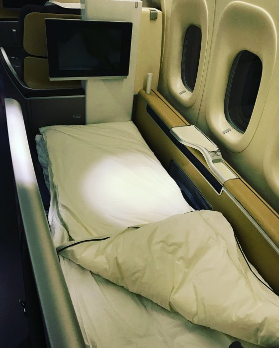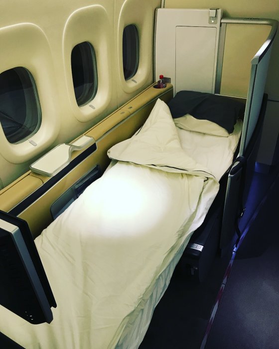 Jag blev lite besviken på komforten i sängen då jag tyckte den var aningens hård men helt ok för en 9-timmarsflight.