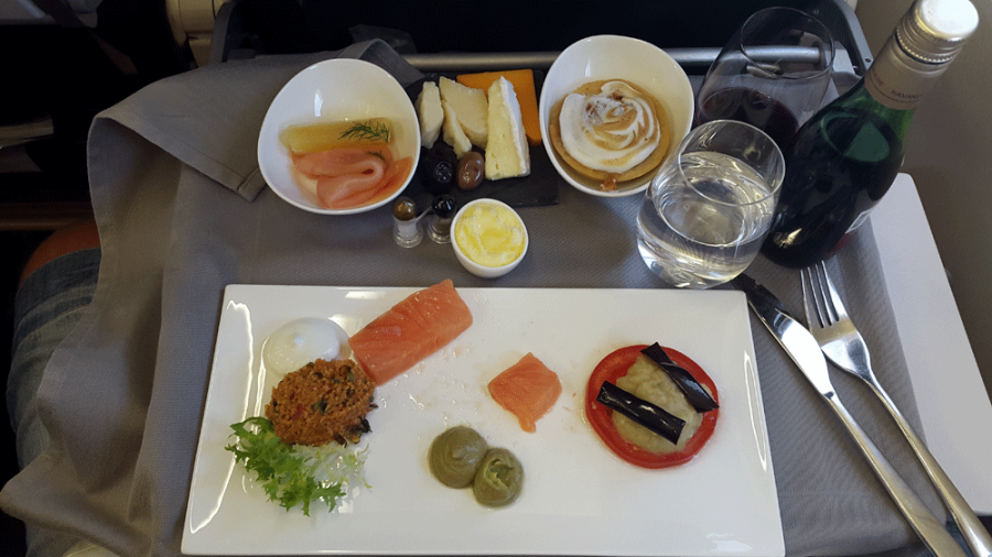 Servicen var sen rejält snurrig, och både mat- och dryckesbeställningar blev fel. Min flickvän bad om vitt vin, men fick en cola. När hon påpekade detta så fick hon ”OK” som svar, colan och flygvärdinnan försvann. Nästa gång vi såg henne var fem minuter senare då hon gick runt med brödkorgen. Vinet skulle dröja visade det sig. En av våra gafflar var dessutom skitig - återigen ett ”OK” som svar, men ingen ny gaffel. Rejäl charterkänsla på den här flighten, tyvärr.