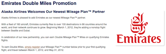 Fr o m 2012-MAR-01 kan man kreditera Emirates flygning till Alaska Airlines Mileage Plan.