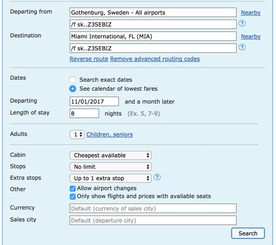 Tror ASRSAVER är intra-Europa billighetsplus. Prova ALSXTRA och PLSXTRA!Vad gör jag för fel?Detta fungerade utmärkt för mig när jag testade i Januari. Nu får jag inte upp en flight hur jag än gör. Har försökt med hela Oktober, November och December: