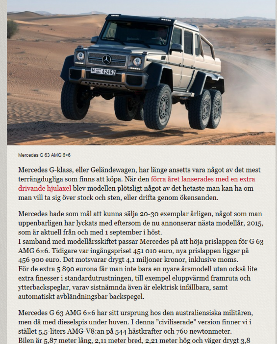 Mercedes G63 AMG 6x6 kanske duger. G-modellen är iofs inte helt exotisk men den kombinationen är ganska udda. Roadside assistance hjälper till om du ändå skulle ha otur. Största problemet är väl för många att det blir för många basbelopp utanför 7,5