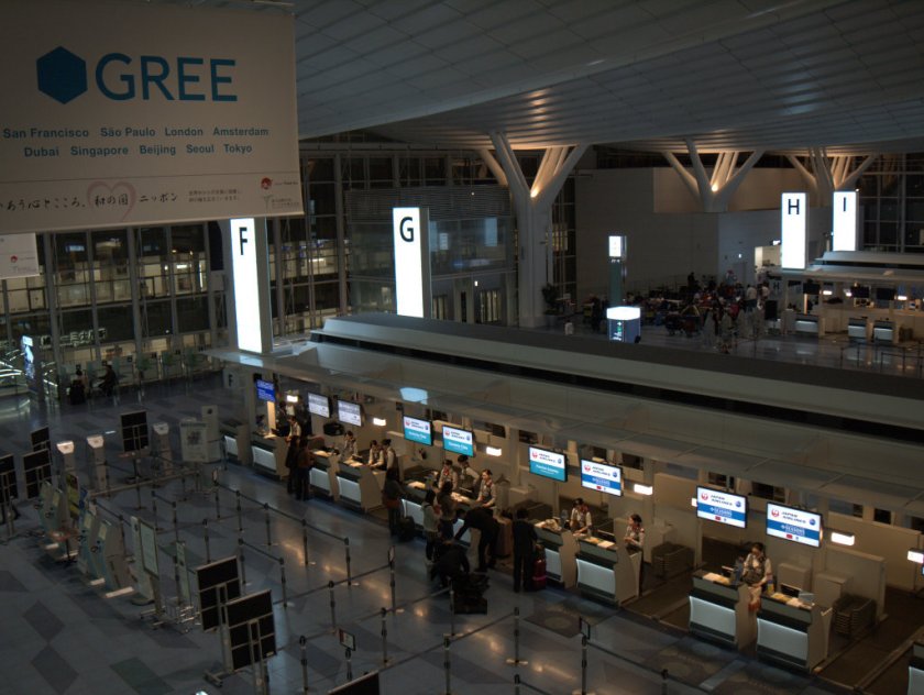 Incheckning kl 20:00 på Haneda, i den ganska nya internationella terminalen: