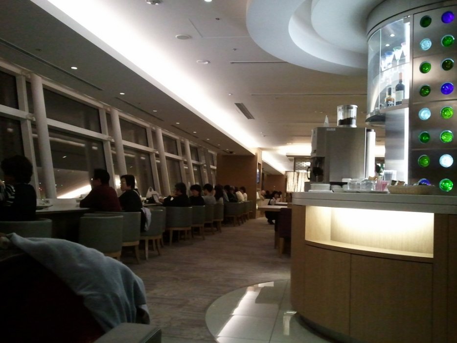 Eftersom det var så lite folk gick det fort att ta sig igenom säkerhets- och passkontrollen. Inte fanns det så mycket affärer (terminalen är inte jättestor) så vi gick till JALs Sakura Lounge istället: