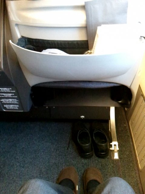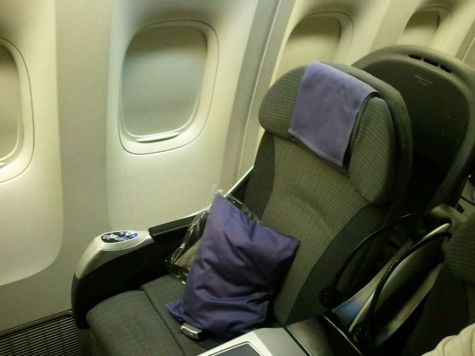 Det fanns två avdelningar business på den här 777-200ER, vi hamnade i den bakre. Om jag jämför med British Airways som jag flög med NRT-LHR i både Club World och World Traveler+ för två månader sedan så var sätet mer likt WT+ än CW om jag ska vara ärlig. JAL har ordentliga business class säten också, men de är tyvärr inte så vanliga på Honolulu-flygen har jag förstått.