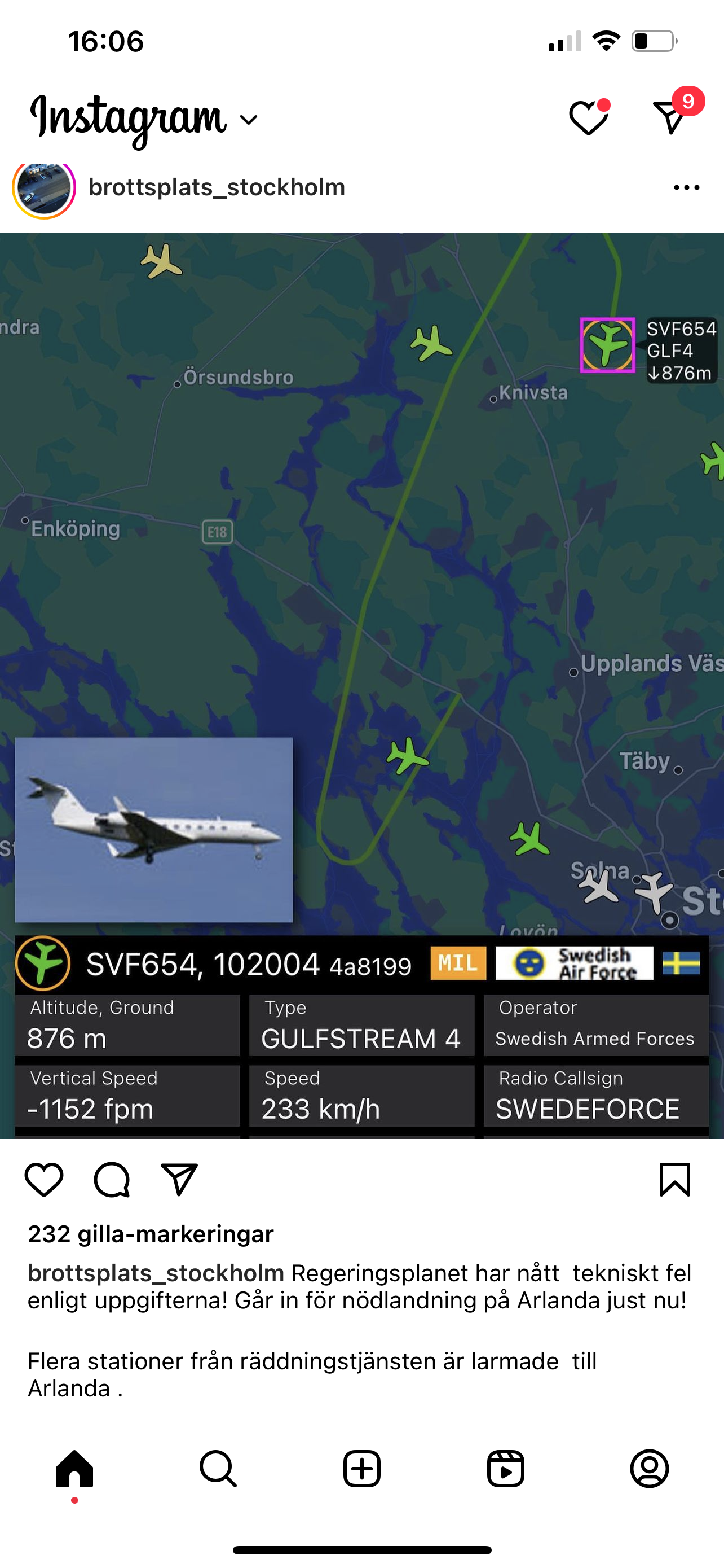 Regeringsplanet ska tydligen nödlanda på Arlanda. Vet inte vem som är på planet.