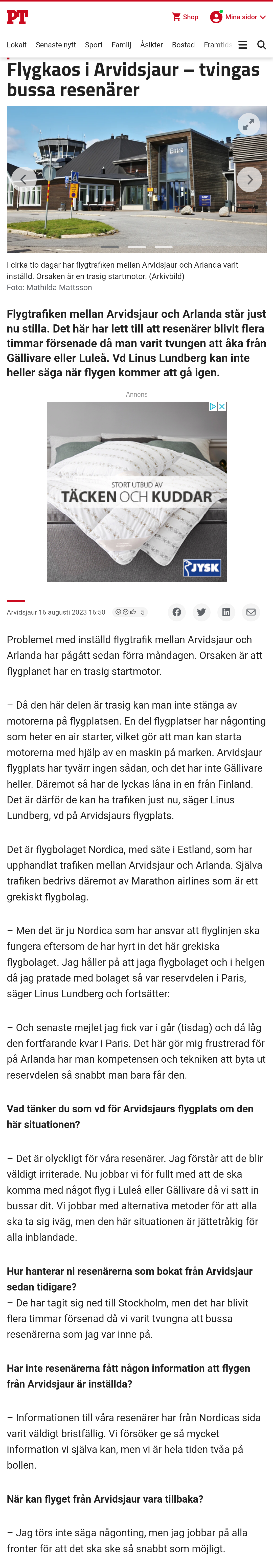 Ser ut att vara stora problem för Marathon airlines i Arvidsjaur.