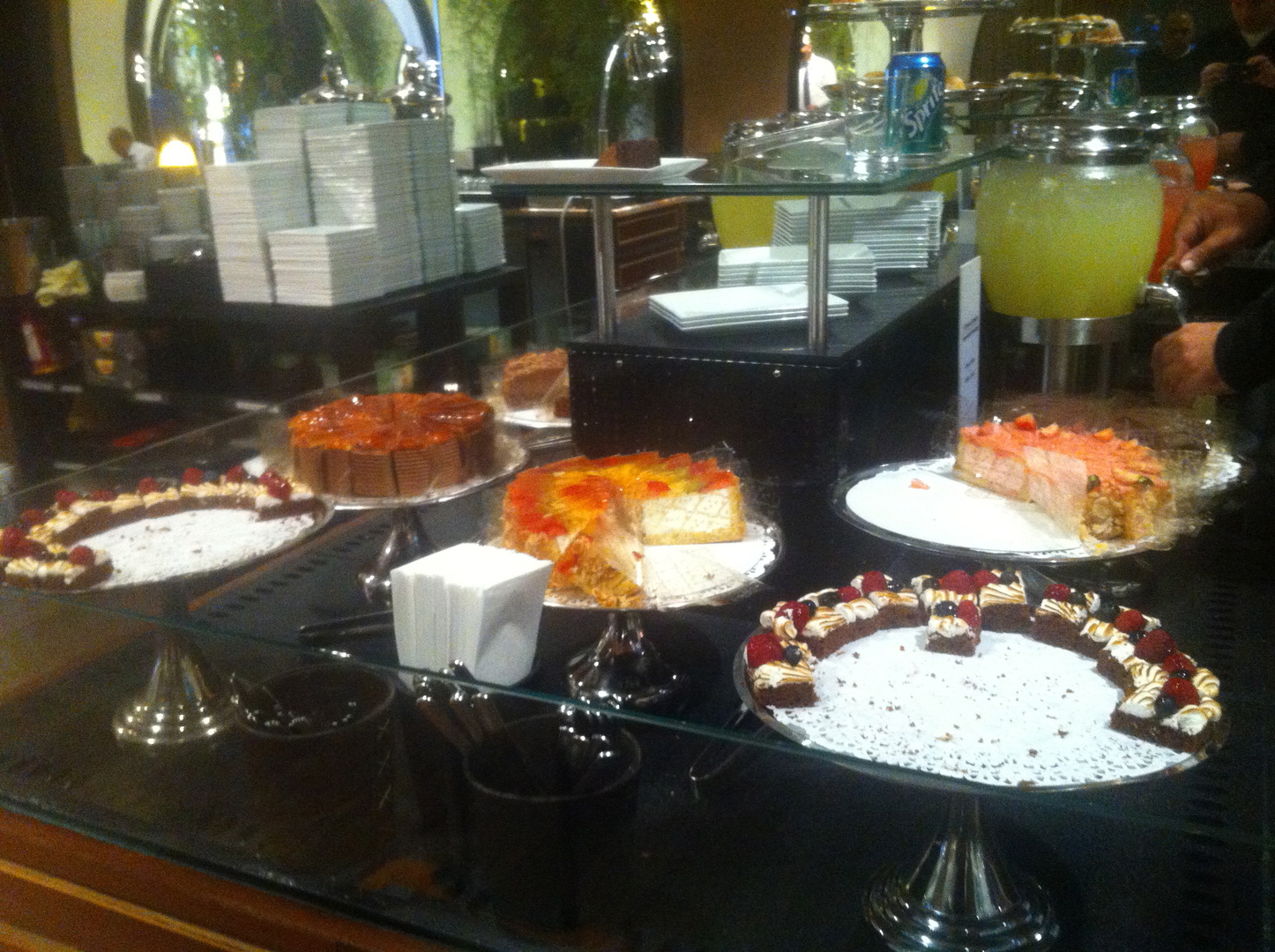 Slutligen fanns det en speciell efterrättsvagn de lassade upp men i och med att klockan började närma sig kl 3 på natten sov många redan så de fick nog slänga mycket glass och chokladmousse kan jag tänka mig. Eller så blev det personalfest.