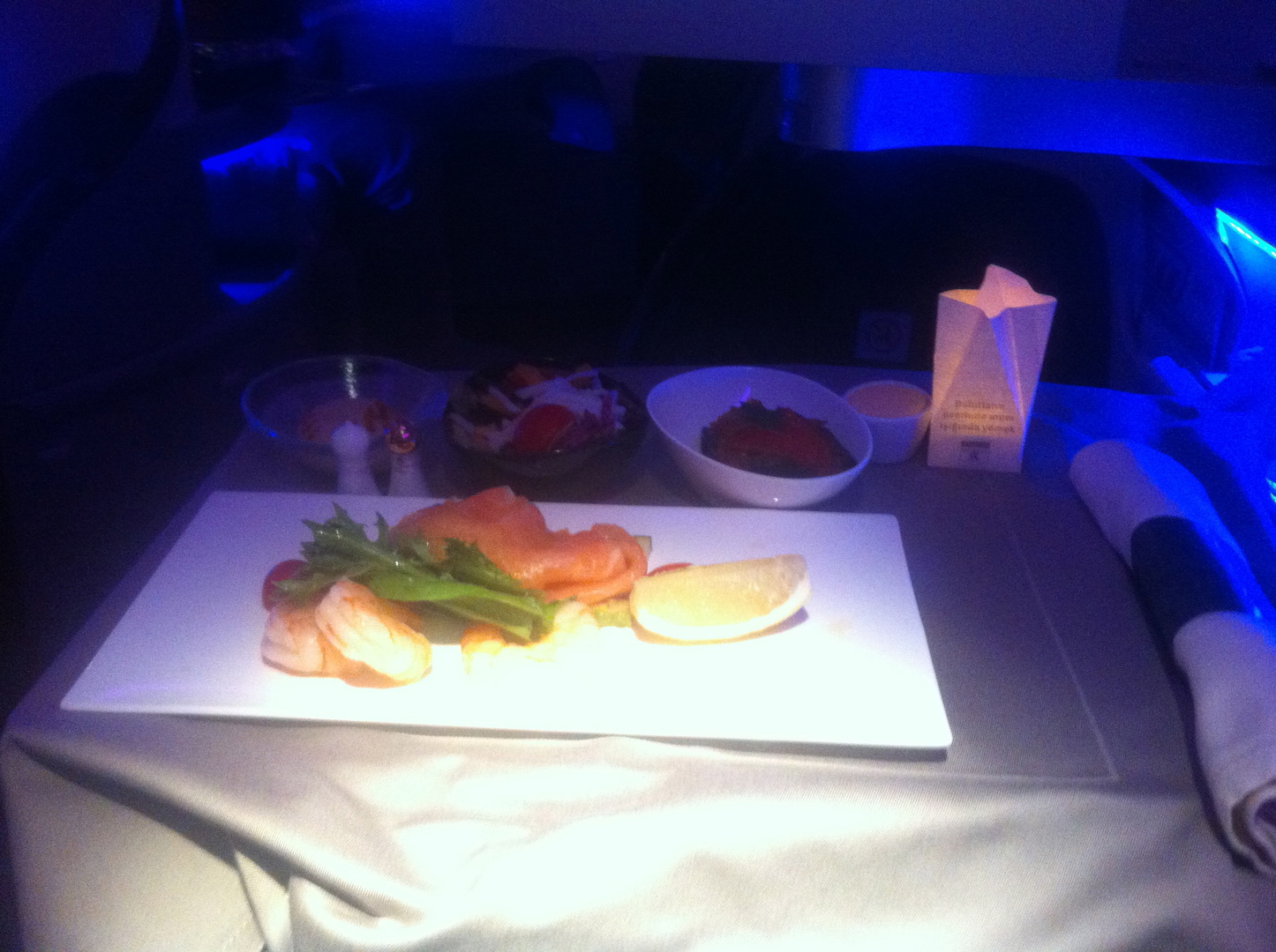 Servicen var uppmärksam och flygvärdinnorna gick flera gånger genom business-kabinen och tittade. Nästan lite väl ofta så jag fick känslan av att de undrade om jag inte ätit klart snart.