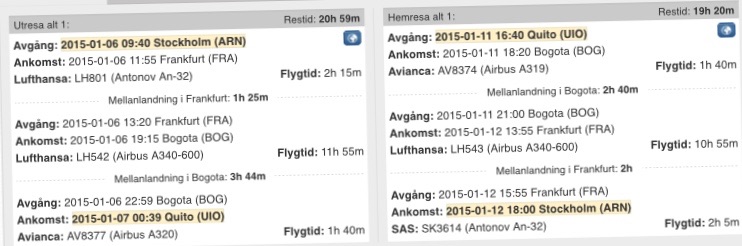 Kollar på resa till Quito i januari och reflekterade över LH equipment på LH 801...