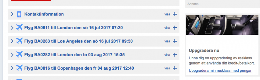 Jag har en resa bokad med familjen, vi betalade ca £900 for 4 st t/r MAN-LHR-ARN i ET, det skulle ha kostad £1500 i CE. Detta var bokat innan BA kom ut med M&S konceptet sa vi tyckte ET var OK. Nu kollar jag pa uppgradering, och BA "is taking the pi$$". Driver dom med mig eller vad ska man tycka om detta?