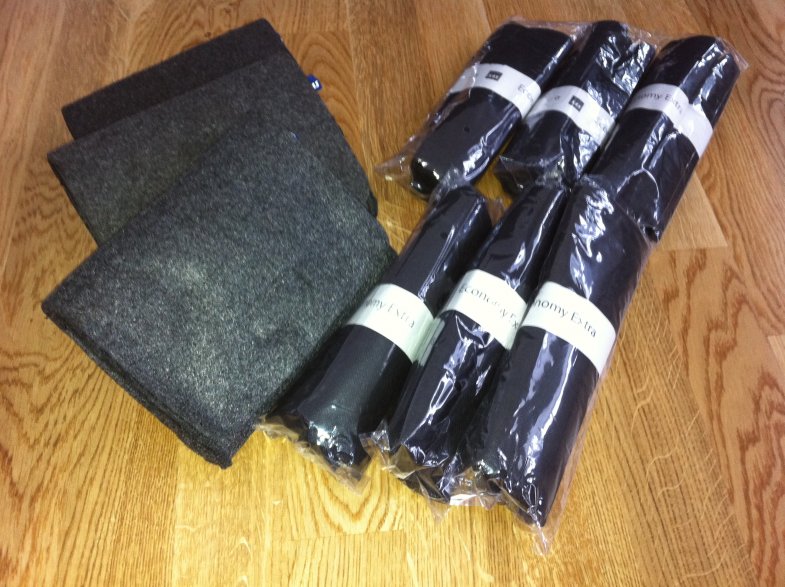 Öh... det verkar som att jag någon gång organiserat upp det hela lite och sen glömt det. När jag öppnade ett av Business-kitten såg jag att den var fullproppad... med nio stycken SAS-sovmasker (varav endast en med texten "Genius at work") och oräkneligt antal öronproppar.