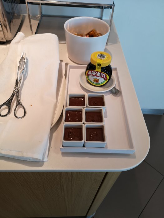 AC Hotell Bella Sky i København. "Nutella" på frukostbuffén. Marknadsförs som "homemade made Nutella". Smaken är dock långt närmre ischoklad än Nutella. Dessutom känns det lite ljusskyggt att kalla detta Nutella. Undrar vad Ferreros frukost-agenter skulle säga...