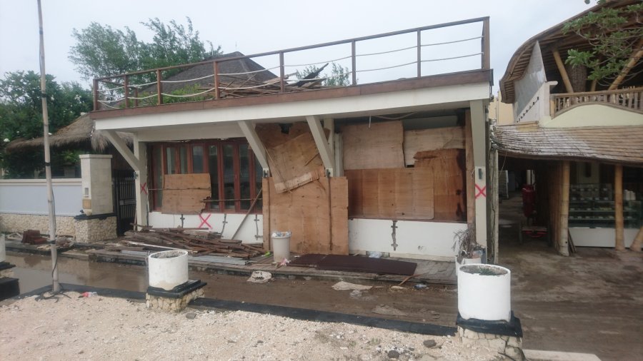 På Gili T så syns fortfarande många spår efter den senaste jordbävningen, även om nästan allt verkar vara öppet som vanligt nu.
