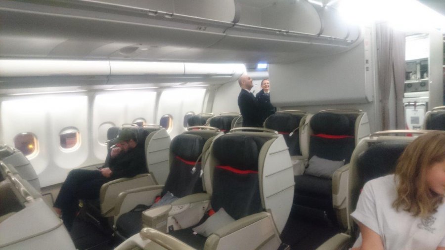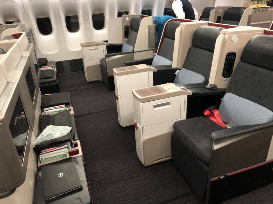 Lätt andfådd så hittar vi våra platser i Turkish B777-300, genast kommer champagnen fram och det känns bra igen! Personligen är jag rätt förtjust i Turkish Airlines Business, stora breda luftiga flatbed säten, istället för den mer moderna stickkojs modellen som är vanlig nu. Det enda negativa är att Turkish fortfarande har kvar 2-3-2 konfiguration på sina wide body, inte direkt kul att hamna i mittsäte då man flyger C klass, men det är ju oftast rätt lätt avhjälpt genom att seata så fort man kan. I vårt fall 2A,2B 3A,3B, helt perfekt för en familj.