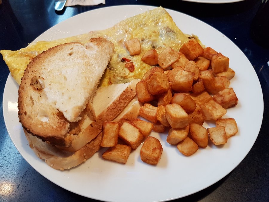 Det blev tidig läggdags och morgonen efter vaknade vi alla innan 6 och började leta frukost ställe. Fick bli South Street Dinner, öppet 24h om dygnet 365 dagar om året. Vi gick emst på utseendet, maten var OK men inte mer. Min omelett går ju inte direkt till världshistorien.