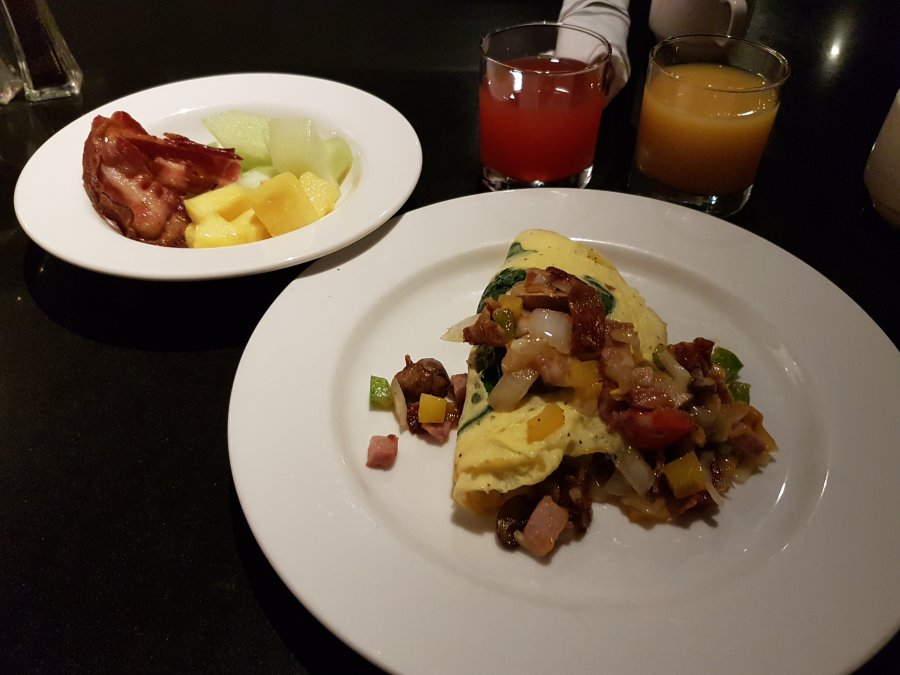 Innan vi gav oss iväg var det dock frukost. Genom mitt Amex Platinum blir jag Hilton Gold och vi fick gratis frukost. Alltid lika trevligt med en omelett-kock. Var hans första dag på jobbet och finns väl inget mer tacksamt än att laga omelett till oss. Inte bästa omeletten jag ätit men grymt bra som frukost med takne på vad vi ätit tidigare dagar.