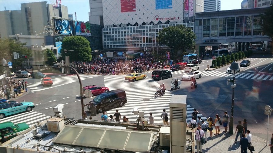 Dag två tog vi en promenad i riktning mot Shibuya, på vägen tog vi en vända genom parken till Meiji-templet, det var söndag förmiddag och vi lyckades se många brudpar samt många nyblivna föräldrar som var där för dop. Väl framme blev första stoppet Starbucks och ett fönsterbord med utsikt över övergångsstället.