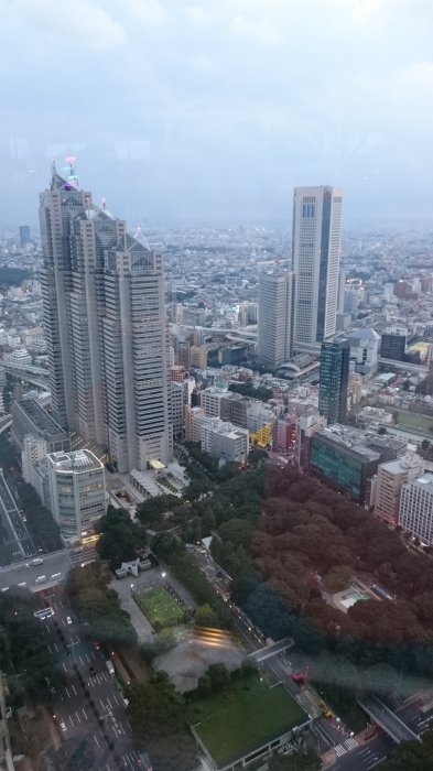 Vi vandrade vidare längs gator och gränder tills vi tröttnade och gick till stationen för att åka tunnelbana tillbaka mot Shinjuku, efter ett byte på vägen bestämde vi oss för att åka en station till och åka upp i Tokyo Metropolitan Government Building för att njuta av utsikten och kolla solnedgången samt vyerna i mörkret.