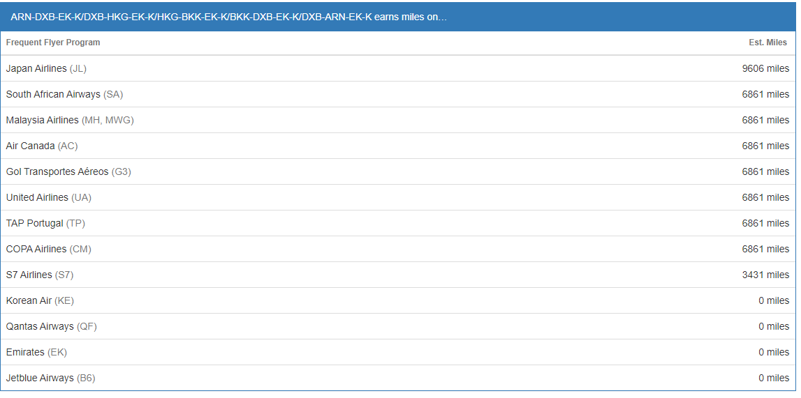 Nu säger 'Where to credit' att K-klass inte ger några poäng till Emirates vilket känns konstigt, men vi leker med tanken att de ger lika mycket som till JALFira nyår i Emirates Economy? Ja, vi går igång på olika saker.